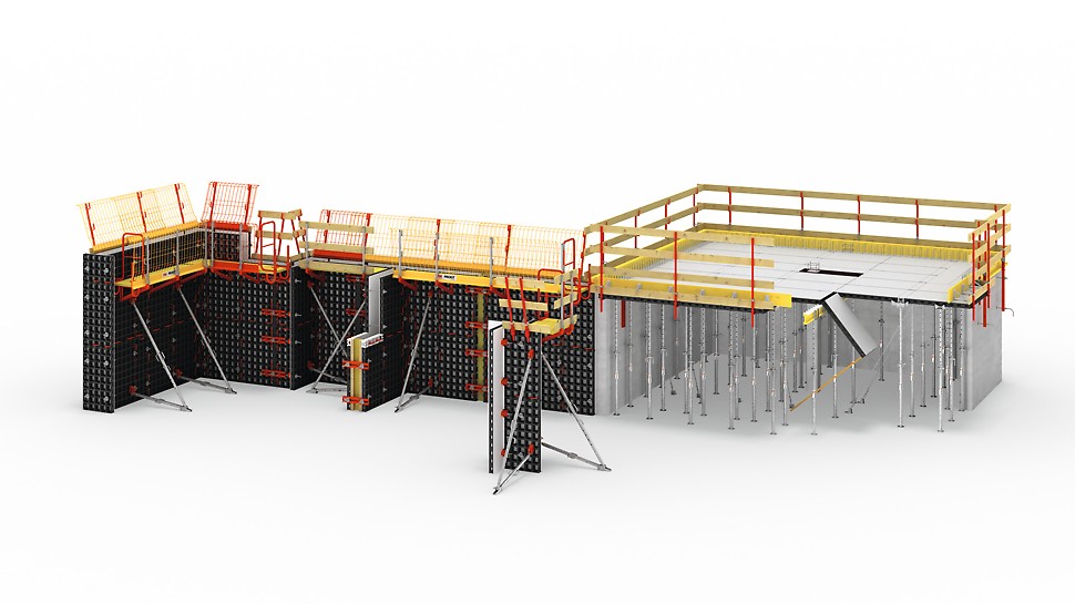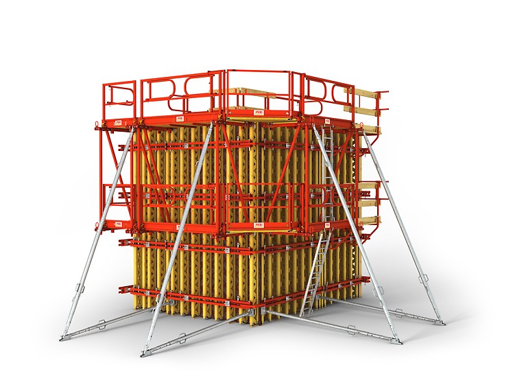 Kod zidnih oplata s nosačima nosači oplate podupiru oplatnu ploču, a čelični profili služe kao profili. Moguća je individualna prilagodba kompleksnim oblicima i visokim opterećenjima. Posebice se građevinski objekti s vidnim betonom i visokim zahtjevima u pogledu površina i optike sidara često mogu učinkovito izvoditi zidnom oplatom s nosačima.