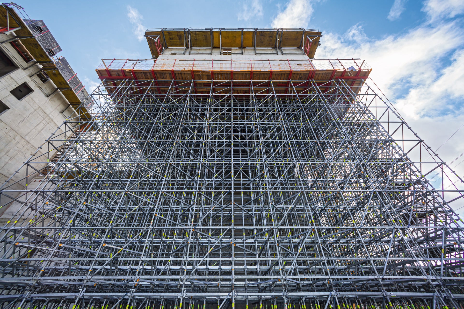 Primjer sveobuhvatnih mjera prenamjene, sanacije i proširenja s primjenom PERI UP potpornog tornja složenog od osnovnih komponenti.