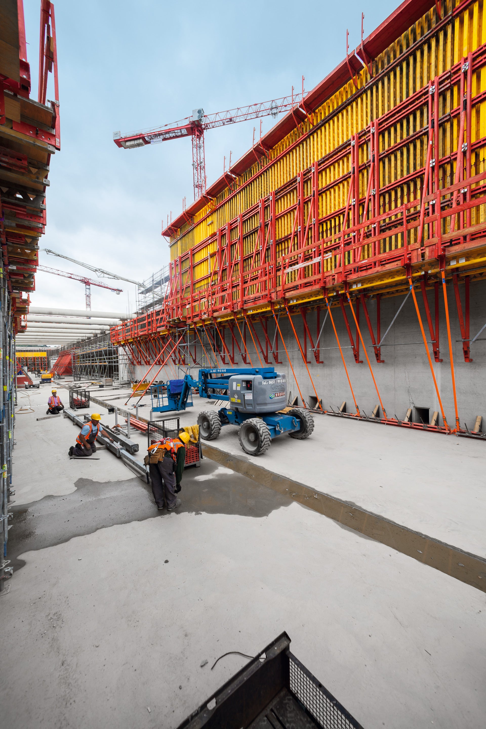 SCS 190Sistemska varijanta SCS 190 ima širinu konzole 1,90 m i nudi mogućnost da se zidna oplata ukosi za demontažu. Stoga ima manje zahtjeve u pogledu prostora i troškovno je povoljnija varijanta izvedbe. Oplata je idealna za radijalan raspored na objektu i prilikom demontaže jednostavno se nakrivi.