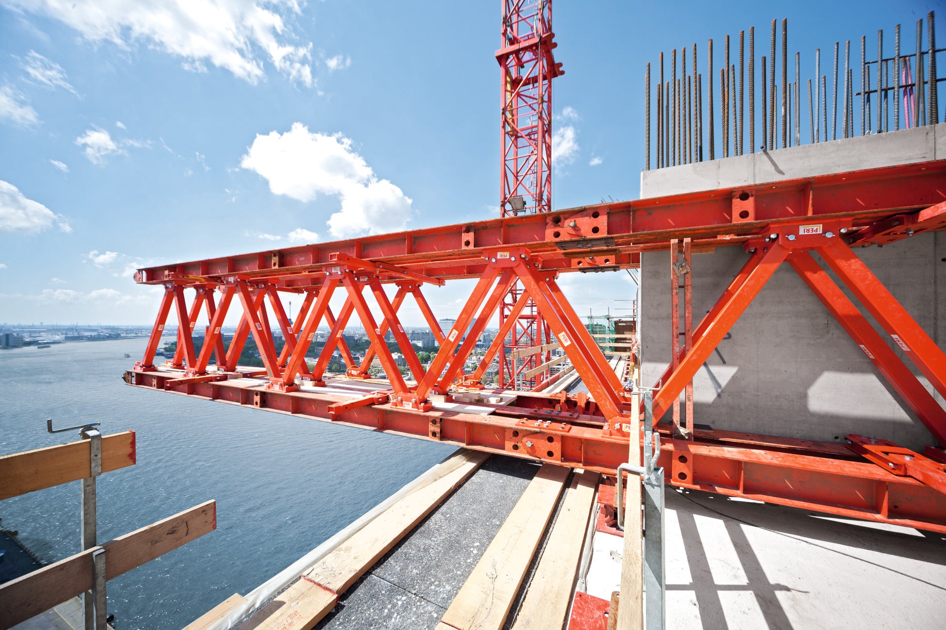 za potrebe gradilišta. Bez problema se ispunjavaju zahtjevi poput otvora za prolaz kamiona ili jednostranih zidnih oplata. Dodatne komponente za podizanje, spuštanje i pomicanje također se ubrajaju u PERI asortiman iz parka najma, kao što