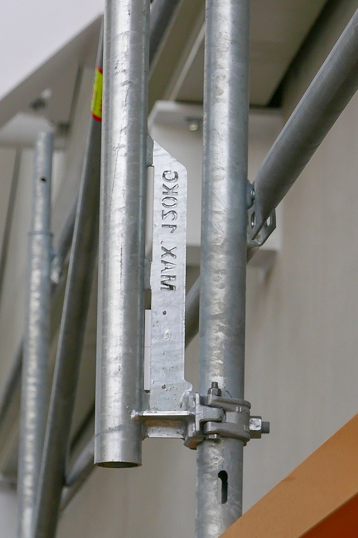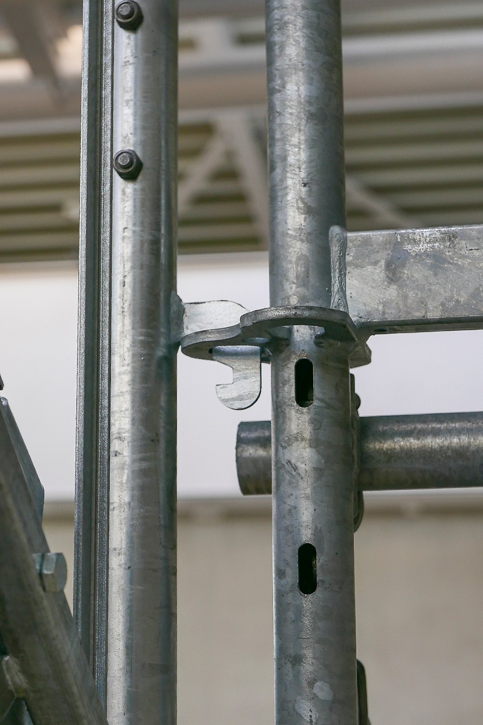 Jednostavna montaža držača prekretnog kraka na PERI UP fasadnu skelu.